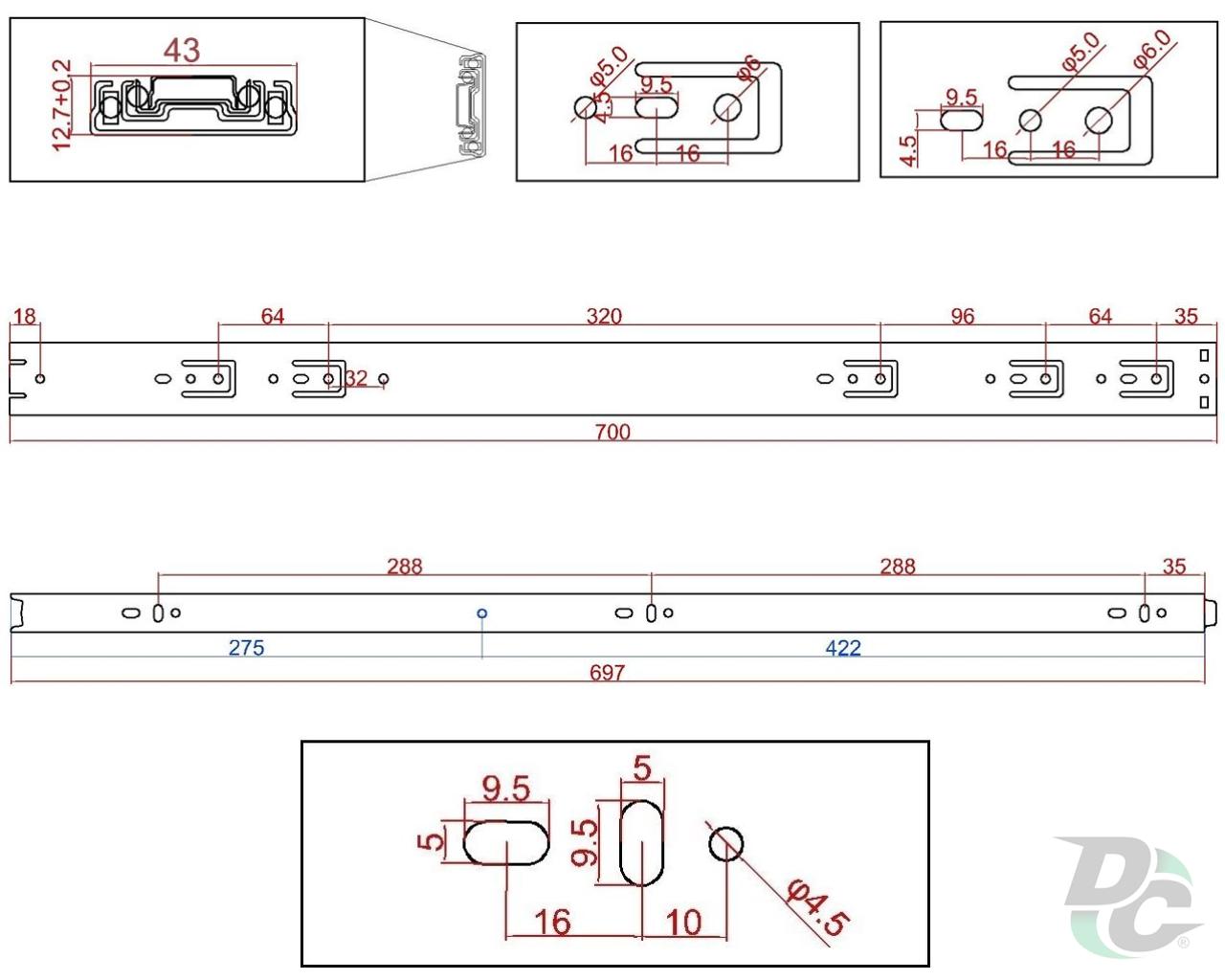 | Slides kind | Telescopic |