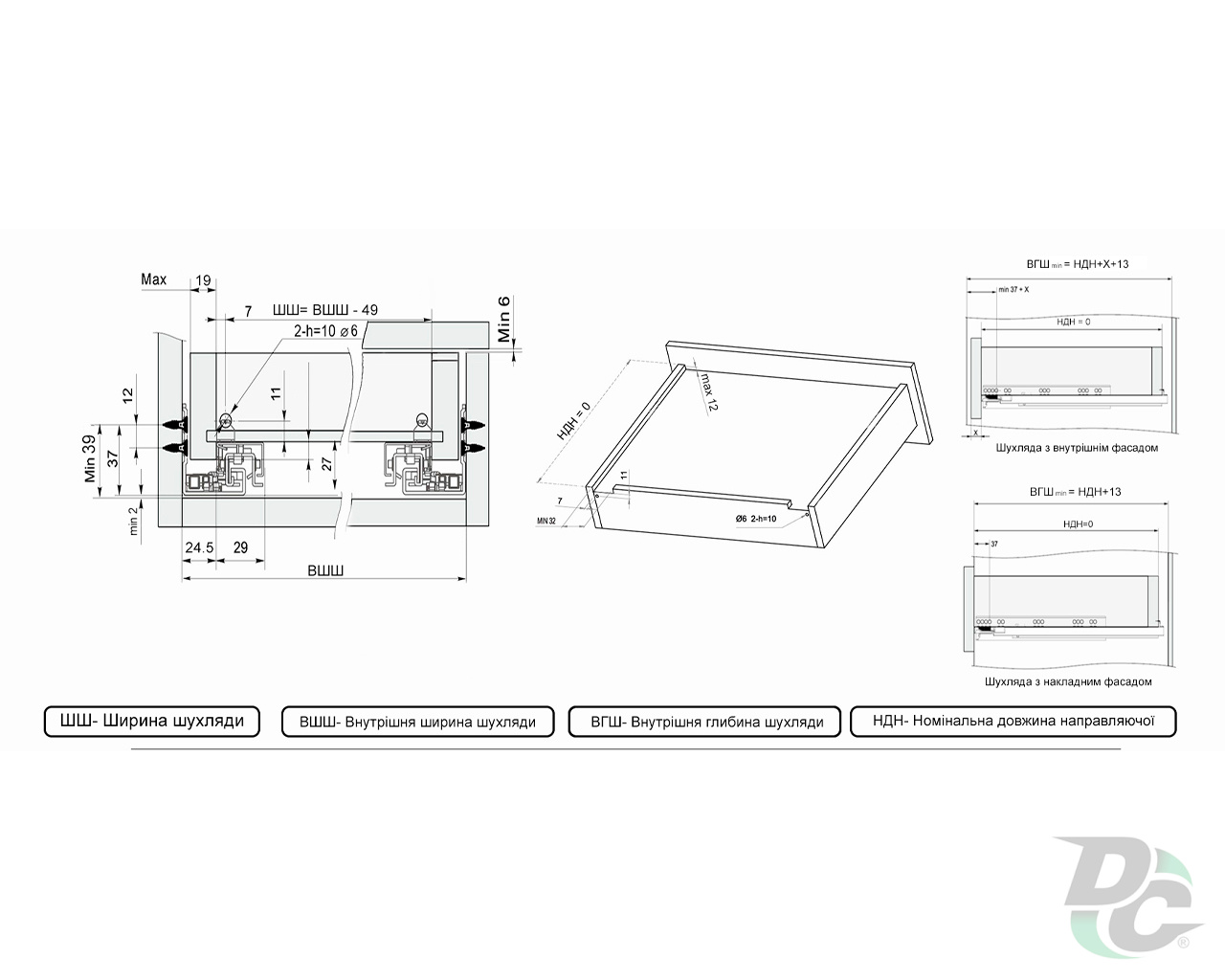 | Slides kind | Сoncealed mounting |
