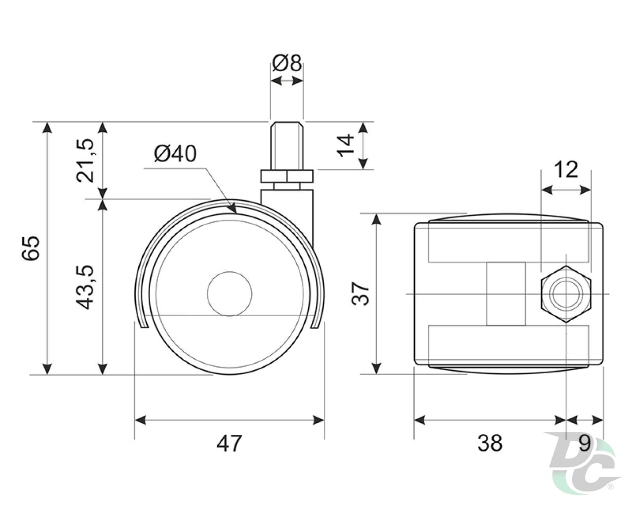 | Тип ролика | Со штифтом М8 |